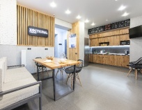 Чистый , опрятный хостел, заселялись с мужем в отдельную комнату с двухспальной кроватью. Имеется общая кухня на которой имеется все необходимое, чтобы приготовить самим или разогреть готовую еду