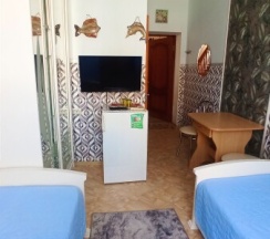 Отдыхала в этом прекрасном гостевом доме. Отличное место для детей. Мультики над открытом небом просто супер.Бассейн чистый. А повару отделое спасибо за вкусную еду.Номера чистые.Белье меняют на 5 сутки. До моря 15 минут . Магазины и кафешки рядом