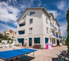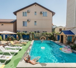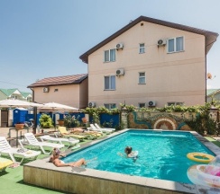 Отдыхала в этом прекрасном гостевом доме. Отличное место для детей. Мультики над открытом небом просто супер.Бассейн чистый. А повару отделое спасибо за вкусную еду.Номера чистые.Белье меняют на 5 сутки. До моря 15 минут . Магазины и кафешки рядом