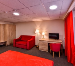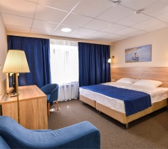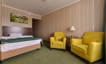 Двухместный номер с одной кроватью, отдельным санузлом с душевой кабиной и раскладным диваном