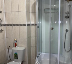 В номере: одна комната, две кровати (90*200), холодильник, телевизор, душевая кабина, фен.