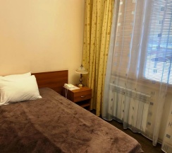 В номере: одна комната, односпальная кровать 120*200, холодильник, телевизор, душевая кабина, фен.