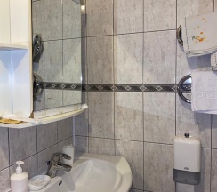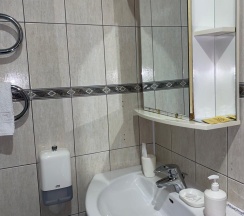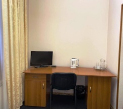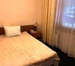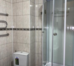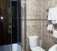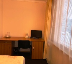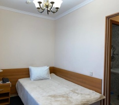 В номере: односпальная кровать, холодильник, телевизор, душевая кабина, фен.