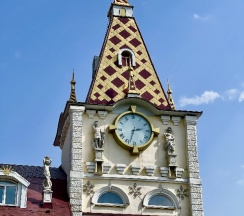 Нас заселили в комфортный, чистый и просторный номер с двумя двуспальными кроватями, столиком со стульями и шкафом. В коридорах гостиницы лепнина, портреты вельмож и старинная утварь. Персонал приветливый и доброжелательный.