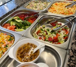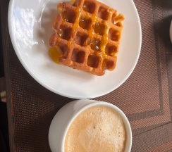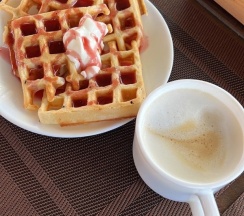 Обедали и завтракали здесь, аппетитная свежая еда, большой выбор блюд, вежливый персонал, вафли и блинчики отличные, обязательно заедем еще!!!