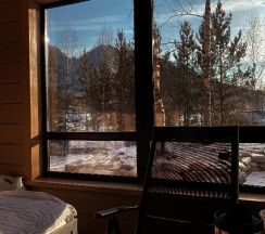 Отель свежий, чистый и уютный. Сначала есть ощущение что сильно рядом с дорогой. Но когда заезжаешь уже кажется что ты в лесу. У меня вид из окна с видом на чемальское озеро от водохранилища. Матрасы и постельное белье отличные. Богатый шведский стол
