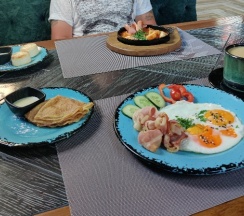 Позавтракать можно сразу же на первом этаже - в ресторане. С интерьером там тоже все в порядке, еда вкусная, обслуживание хорошее