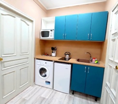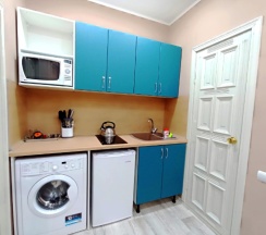 Отличный отель, есть все необходимое ( холодильник плита стиральная машинка микроволновка) большой просторный номер
