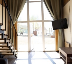 В барнхаусах имеется абсолютно все-удобная кровать, диван, стол, телевизор, холодильник, полотенца, wi-fi, вечером можно пойти в уютное кафе, охладиться напитками