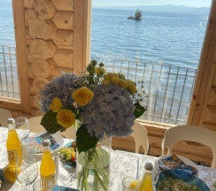 Отличное место для отдыха. Замечательные домики, в доме чистота, постельное бельё белоснежное, полотенца тоже белоснежные ни единого пятнышка, матрас и подушки удобные. Есть кондиционер, что огромный плюс. Есть общая кухня, и она очень оригинальная, интересная:) Правда нужно учесть, турбаза в стадии благоустройства, что наверно устроит не всех, но нам это не мешало. Отдельное спасибо за баньку на воде (нам её предложили бесплатно, так как когда мы приехали, была очень плохая погода, дождь лил не переставая). Теперь о небольшом нюансе, может кому то будет полезно: дорога в дождь очень плохая, её просто размывает. Мы на низкой машине с трудом проехали. Обратно поехали через деревню, дорога тоже не идеал, асфальта там НЕТ. Ещё могу для справки, для тех кто едет с Иркутска, чтобы расчитать время в пути. Мы выехали с Иркутска в 4 утра в 11.00 были в Улан-Удэ, успели там прогуляться и к 15.00 были на турбазе. И ещё отдельная просьба или предложение для администрации турбазы. Нам очень сильно не хватило электросушилки для белья в санузле. После бани бельё даже за два дня не просохло. И мне очень и очень не хватило швабры в доме. После принятия душа пол мокрый и около унитаза в том числе, долго сохнет. А вообще спасибо за хороший отдых :)