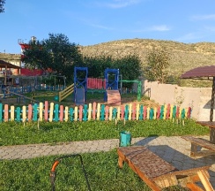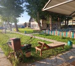 Имеется несколько беседок, есть столовая, где есть электропечь, посуда, посудомоечная машина, в общем все для комфортного отдыха), мангалы расположены около каждой беседки