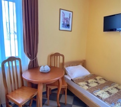 Лаконичный уютный номер, много продуманных мелочей. Уютный двор гостиницы. Доброжелательное отношение к гостям. Море близко. На общей кухне удобно готовить, а так же поблизости хорошая столовая. Очень понравилось, отлично отдохнули. Спасибо.