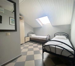 Не понравилось: Горячей воды в накопительном водонагревателе не всегда хватало для мытья по очереди троих человек даже при экономном расходе (с учётом мытья двух голов с длинными волосами). В номере нет СВЧ-печи (но есть в кухне на 1 этаже). Кухня закрыта с 23 часов до 7 - это накладывает некоторые ограничения.