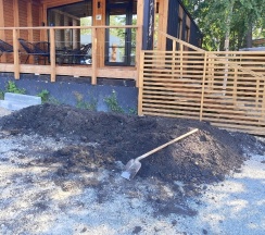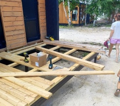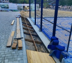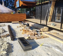 Хочется попросить организовать душ около бассейна, чтоб после сауны не заходить в бассейн потным, а также сделать от сауны дорожку из бехотона или досок до озера чтоб не тащить в сауну песок.
