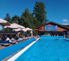 Вечером в бассейне накупались, вода горячая, на улице прохладно - супер! Погрелись в баньке, а потом в суровый Тургояк, бодрит, впечатления супер!