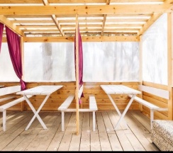 Большие беседки, очень удобно рядом с домиком. Побольше вам гостей. И успехов в вашей работе.До Байкала всего метров 30. И это здорово 👍