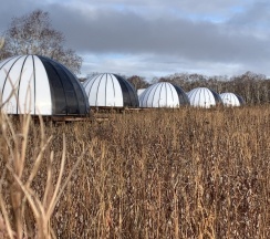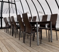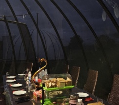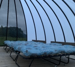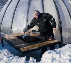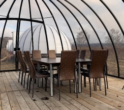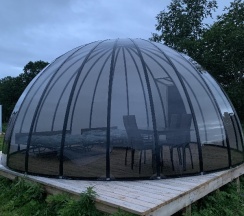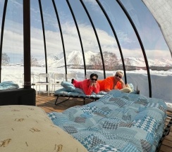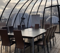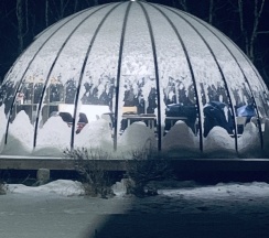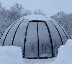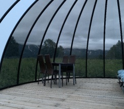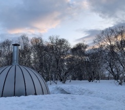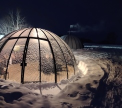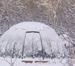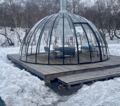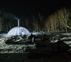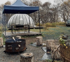 Есть все удобства, ну и конечно ночевать в стеклянном куполе смотря на звезды под звук потрескивающих дровишек в печке, - это особая ни с чем не сравнимая романтика.