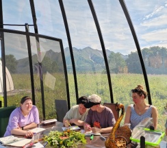 Хозяйка леса- так мы называли Викторию, которая пригласила и любезно приняла нас в эти дни, вкусно кормила и рассказывала удивительные истории этого места. Энергетика и волшебство, которого ощущается, как только ты встанешь на землю, спускаясь с большой, пароходной машины, на которой нас привезли.