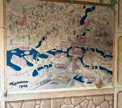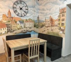 Чего только стоит карта Кенигсберга на стене, мастерски исполненная художником из Иркутска и краткое разъяснение Александром как куда на чем добраться-никакого навигатора не нужно.