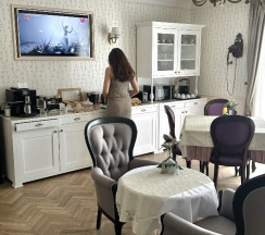 Понравилось: Завтрак изумительный. В атмосфере чудесной. Интерьер с тонким вкусом оформлен, даже салфетки на столе подобраны в тон к картинам и цветам на столе, изысканно и утонченно. Коллекция телефонов вызывает восхищение.