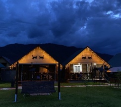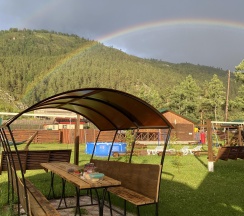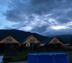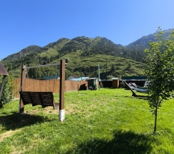 Хорошая, чистая и уютная база с прекрасным видом на гору⛰️ Приезжали с семьей, бронировали два домика. Сами домики стоят на хорошем расстоянии друг от друга, точно не слышно соседей. У каждого дома своя беседка, качеля и мангальная зона. В ванной комнате есть одноразовые тапочки, гель для душа, шампунь и фен. Ооооочень удобный матрас и какое-то потрясающее большое одеяло, в меру тяжелое. Спали, просто как младенцы😌 Сама база небольшая, но на ней есть все, что необходимо. Приятные мелочи, вроде накрахмаленного постельного белья, милых занавесок в цветочек и даже темные шторы. На территории имеется очень чистенькая кухня на которой можно приготовить. Даже стиральная машина есть. Различный чай всегда в открытом доступе. На территории есть качели, гамаки, бассейн и даже маленькая детская площадка. Хозяин Виктор очень отзывчивый, но при этом ненавязчивый. Решает все возникающие вопросы очень быстро. Большое спасибо вам за гостеприимство❤️ Чувствуется, что в это место вложена душа и все сделано с заботой о госте😊 Единственный минус, в 1 домике практически не работал телевизор. Но может это и к лучшему, было больше времени полюбоваться природой и пообщаться😁