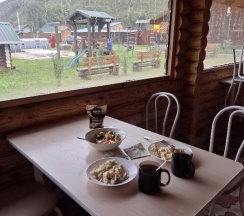 Очень понравилось база добрый кот. В домиках все чисто,есть холодильник, душь,все необходимое для гигиены, фен. Для нас большим плюсом было что можно с животными, у нас собачка. Есть стиральная машина, после сплава очень актуально. Есть все необходимое для приготовления пищи ( плита, посуда,чайник). И даже есть возможность угоститься вкуснейшим травяным чаем. Хозяин гостеприимный, добрый, отзывчивый!