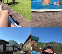 Были на отдыхе проездом в Чемале,долго искали жилье где можно остановится переночевать и к счастью наткнулись на данную турбазу,дворик ухоженный,домики нам очень понравились,заходишь и чувствуется уют,все чисто,пахнет новым,постелька чистая,во дворе имеется общая кухня ЧИСТАЯ 🧼,возле домика есть беседка и мангал где вы можете сами приготовить себе покушать,бассейн лежаки тоже все ухоженное чистое,детская площадка не большая,можете постирать вещи за небольшую плату,хозяйка Марина очень хорошая девушка,мы с ней даже сдружились,спасибо за теплый прием и душевные разговоры❤️ Самое неожиданно было вечером когда уже стемнело ребятишкам включали проектор с мультиками на улице,все с удовольствием даже взрослые смотрели мультики в удобных креслах-мешок,мы остались довольны,только положительные эмоции и хорошие воспоминания остались с нами☀️☀️☀️ Так же рядом есть пасека где вы можете бесплатно попробовать медовуху 🍯 Спасибо вам большое за такое хорошее место,возможно когда то мы вернемся на Алтай отдыхать,обязательно заедем к вам❤️❤️❤️ С любовью и теплотой КЕМЕРОВО 🇷🇺👋