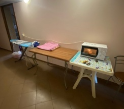 Минусы: мыльных принадлежностей совсем не было, пришлось своим шампунем руки мыть, туалетная бумага самая дешёвая.. Прибор который держит зубные щётки, уже давно заржавел, мебель вся старая, самому загрузить в стирку вещи нельзя(не доверяют никому ее),после уговоров нам все таки загрузили вещи в стирку, когда мы стали вывешивать белье, верёвки были все в волосах запутанных 😖. WiFi нам не предложили (даже не знаем есть он там или нет), чайник общий ( 1 на 1этаж)