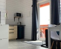 Понравилось: Аккуратный, красивый домик-баня. Все новенькое и чистое. Приветливая, дорожелательная хозяйка. Сауна хороша,(хоть и нагревается до 80 градусов, для нас этого хватало). Вокруг тихие места: частные домики, вдали от активного движения. Удобная двуспальная кровать, просторная комната на 2 этаже. На 1 ом кухня-гостиная, санузел, сауна. Есть крылечко, на улице мангал.