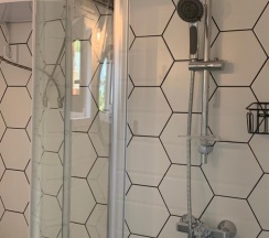 Сауна прекрасная, душ просторный и удобный, напор воды хороший. Бака горячей воды 50л нам на двоих хватило с избытком не экономя даже особенно воду.
