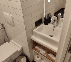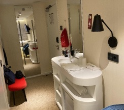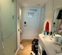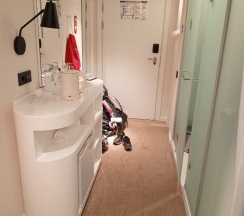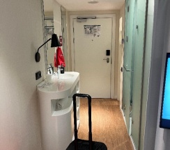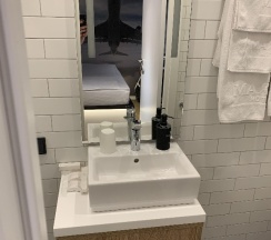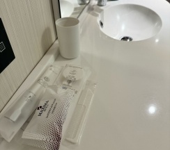 Удивительно, как все продуманно на такой маленькой площади Имеются одноразовые принадлежности, фен и комплиментарный кофе И отдельное спасибо за ресторан