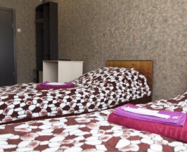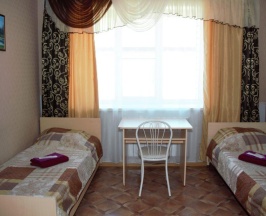 В номере: две односпальные кровати, столик. Удобства (душ, туалет) общие, расположены на этаже.