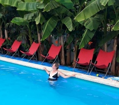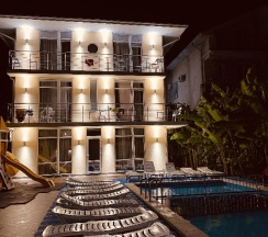 Замечательный отель. Есть все удобства. Душ, туалет в номере. Ремонт свежий, кровати удобные. Есть где постирать белье, погладить, сушилки. Чистый бассейн и лежаки для загара. Есть мангал. Можно заказывать вкусную и домашнюю еду, завтраки такие вкусные и недорого.