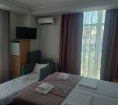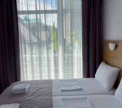 Отель супер!!! Размещение комфортное, номера свободные, ремонт отличный, всё новое. Девочки Екатерина и Надежда умнички!!! Всегда на связи, ответят на все вопросы, помогут с возникшими задачами. В отеле на столько уютно и чисто, как дома. Расположение от моря минут 15 прогулочным шагом, но нас это устраивает, так как в стороне от вечерней суеты. Бассейн на территории чистый, разделён на две зоны (детская и взрослая), спасение от обеденной жары. Обязательно вернёмся к вам!!!