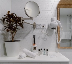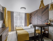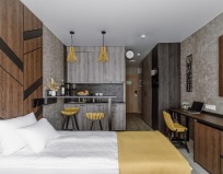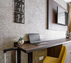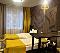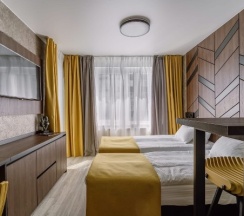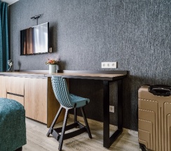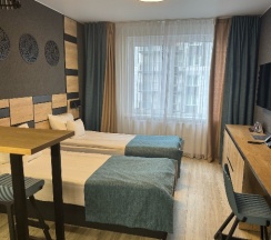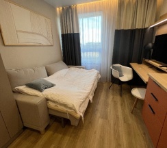 Отель приятно удивил. Были проездом, забронировали самую простую категорию. Номер оказался весьма просторным, хорошо укомплектованым всем необходимым, начиная от посуды и заканчивая гладильные принадлежностями (утюг, кстати, оказался очень хорош). Вся мебель хорошего качества. Пастельные принадлежности также из отельной серии. Всё очень чистое. В номере очень уютно и комфортно. Есть чайные принадлежности в номере (вода, чай, кофе растворимый, сахар). А для любителей зернового кофе, возле лифта на 1 этаже есть кофейный аппарат с очень вкусным кофе, на выбор (отдельная рекомендация). Персонал очень дружелюбный, профессиональный.
