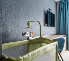 Номер приятный, есть сейф, большая кровать (состоящая из двух 1,5 спальных), ТВ, много места для вещей и хранения. В целом все выглядит опрятно, в номере был проектор ночного неба - очень атмосферно.