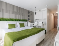 Пожалуй лучший сервисный комплекс в городе. Уверен он догонит и перегонит все остальные. Или как минимум будет на уровне. И здесь много ключевых факторов. Первое это транспортная доступность. Метро и вокзал. А так же легко пешком дойти до самого центра. Второе абсолютно новый и стильный как снаружи так и внутри. С множеством дополнений как переговорок и конференц залов. Прочие услуги ещё дополняются и наполняются. Но уже и этого достаточно. Рядом огромный фудмол в котором можно покушать и развлекаться. Мне очень нравится когда в номере есть кухня на которой можно закрыть многие потребности. А по соседству крупный гипермаркет круглосуточный где есть все необходимое. Комфортные номера, хрустящие снежно белые атрибуты все это делает отдых полноценным. Рекомендую от души ! А если умело использовать и находить промокоды то можно получить хорошие бонусы!!! Благодарю за сервис !