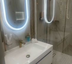 Отдыхали в золотом номере, с круглой кроватью! Очень чисто, при заселении, мебель новая, ванна это вообще огонь))))но хотелось бы еще и смену полотенец и уборку номера, за 4 дня не разу этого не было….есть кофе машина, конфетки положили, чай! Мы брали завтраки, очень вкусно (рекомендую). В общем отель достойный! Большой плюс его расположение, рядом метро, 20 мин и вы в центре! Рекомендуем!