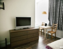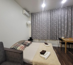 Гостинница на первом этаже пятиэтажного дома. Соседей не слышно. Тихо и спокойно. В номере есть всё необходимое. Желательно улучшить уборку в укромных углах и не хватает зеркала в гостинной. Оно есть только в ванной комнате. И еще: при заселении нам сказали можно воспользоваться стиральной машиной, но на следующий день она была занята бельём из гостинницы. Как говорится: ловите момент.