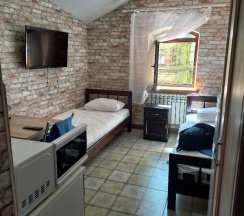 Мини-студия в самом центре. В первый день был запах, шёл из раковины, решила заливанием жидкости для мытья посуды в слив. В целом, отличный вариант на пару-тройку дней. Из минусов-слышимость между номерами отличная)