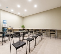 Понравилось: На ресепшене холл с 4-мя диванами, журнальными столиками и телевизором. Комната для размещения и сна большая - на 8 человек, светлая, каждому есть ящик для одежды с 3-мя плечиками, прикроватный коврик, резин.коврик под обувь, тумба под мелкие вещи. Женская душевая на 5 человек, 3 раковины с зеркалами + отдельная комната с душем, унитазом и раковиной. В женском туалете 6 кабинок и 2 раковины с зеркалами. Комната для чаепития, отдыха с телевизором, с местами для работы на ноутбуке, зона для глажения.