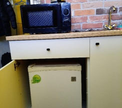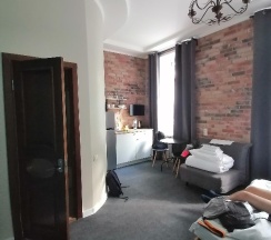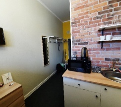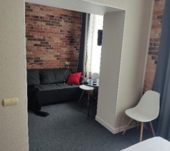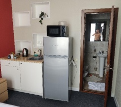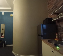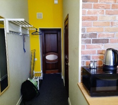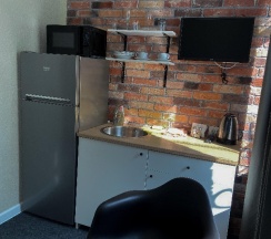 Супер, большой номер с двуспальной кроватью. Холодильник, чайник, диван. Есть плитка, микроволновка. Парковка перед входом, если удачно поставить машину, то её будет видно с окна.