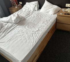 Останавливались в отеле в сентябре, не в сезон. В дождливую и прохладную горную погоду в номере было очень комфортно. Мягкая постель, небольшая кухня в номере, душ, туалет, все удобства.