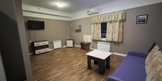 Очень лояльный администратор, цены приятно удивили (середина мая 2023), удобное расположение, рядом с центром. Рядом несколько продуктовых магазинов. В номере холодильник, есть посуда. При просьбе могут предоставить ещё посуду, чайник и фен. Номер ОЧЕНЬ просторный, со своим коридором. В ванной удобная этажерка с множеством полок, крючков достаточно, но они только в коридоре и ванной.