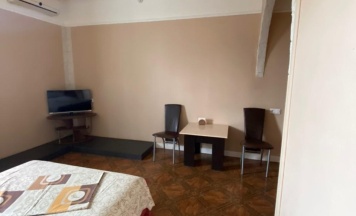 Уютна комната студия, оборудованная всем необходимым для комфортного проживания. В комнате двуспальная кровать, диван, кондиционер, телевизор, холодильник, чайник, санузел с душем.