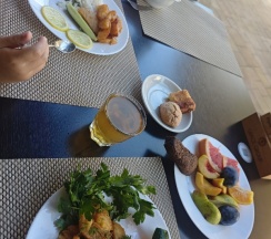 Очень приятный отель. Сотрудники отзывчивые. Завтрак-шведский стол, очень сытно и вкусно. Номера убирают каждый день, замена полотенец и халатов может задерживаться из-за загрузки прачечной, но все равно все приносят быстро. Также в отеле есть аниматор, который займет ваших детей различными играми, а также проведет аквааэробику для всей семьи.