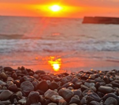 До пляжа идти недалеко, на пляже есть крытые шезлонги для жителей отелей Грейс, но пляж галечный.