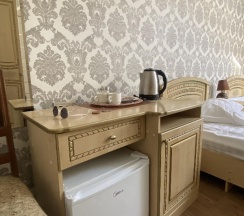 Хороший отель , нам все понравилось! Кондиционер работает, все просторно и чисто 😊 Мы заселились на сутки ,все устроило. Хорошие сотрудники. Мы довольны!👍 Жили в 18 номере а 3 этаже ) Кружки, тарелки, чайник , холодильник и банные принадлежности все было и даже чай ) Спасибо 👌