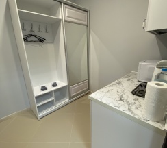 Номера категории «Стандарт Одноместный» отличает теплая и уютная атмосфера. Однокомнатный номер с удобной односпальной кроватью, ванной комнатой с душем и прихожей. Номер оборудован мини-кухней.