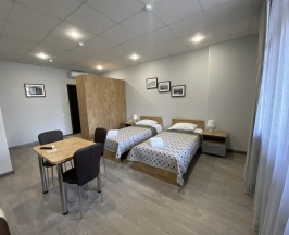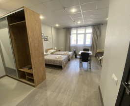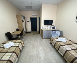 Номера категории "Стандарт двухместный 1 категории" с диваном и двумя отдельными кроватями со всем необходимым для проживания. Номера уютные, теплые, светлые. В номерах индивидуальная ванная комната с санузлом. Оборудована мини-кухня. Возможно размещение 3-4 человек.